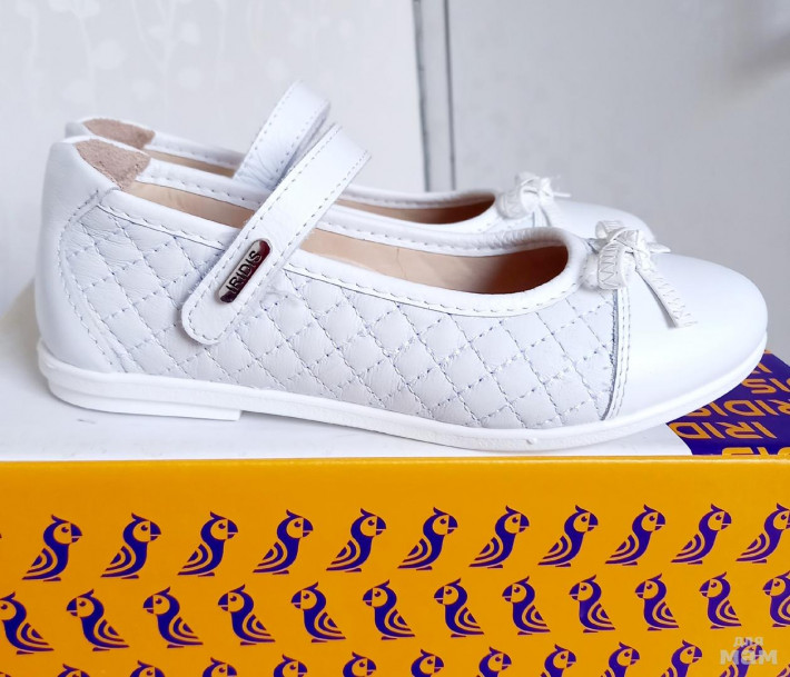 НОВЫЕ стильные туфли IRIDIS (Италия) р.33 (21 см). Из мягкой натуральной кожи белого цвета. Высокая пяточка с защитой от натирания, застёжка на липучку, анатомический подсводник.