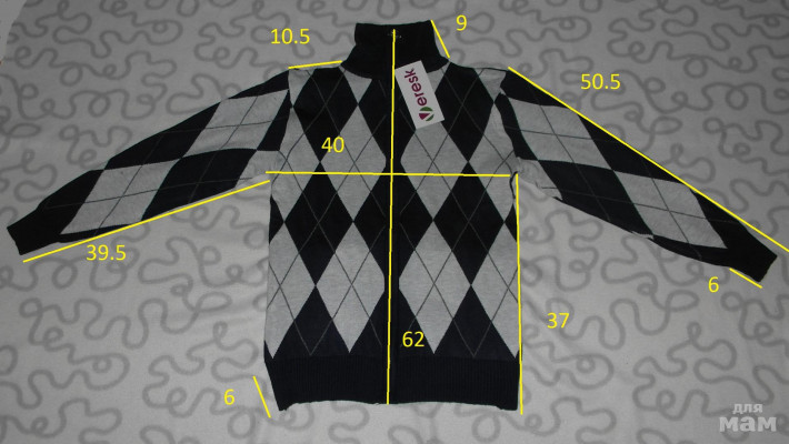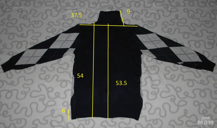 Горловина, края рукавов и край свитера связаны резинкой.