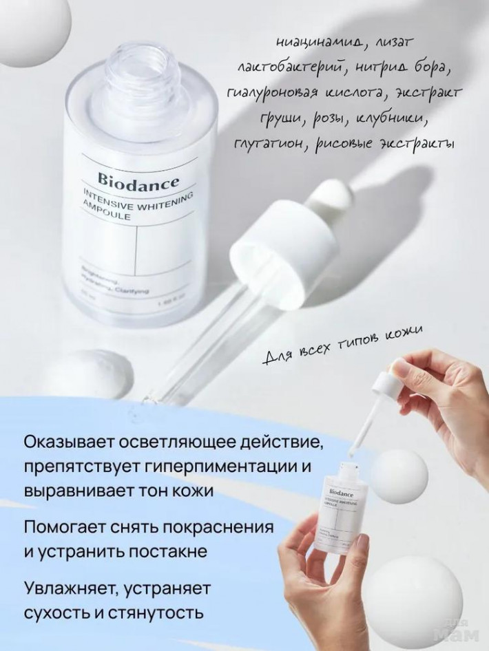 Сыворотка для лица осветляющая Biodance Intensive Whitening Ampoule, с ниацинамидом, 50 мл