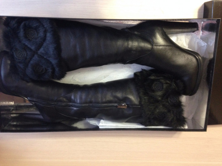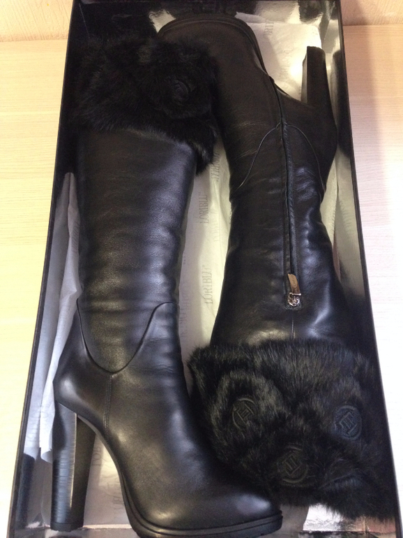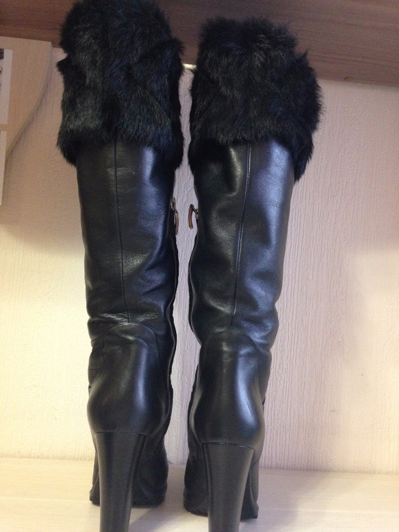 Отворот из натурального меха с логотипом, отворачивается, получаются ботфорты.
