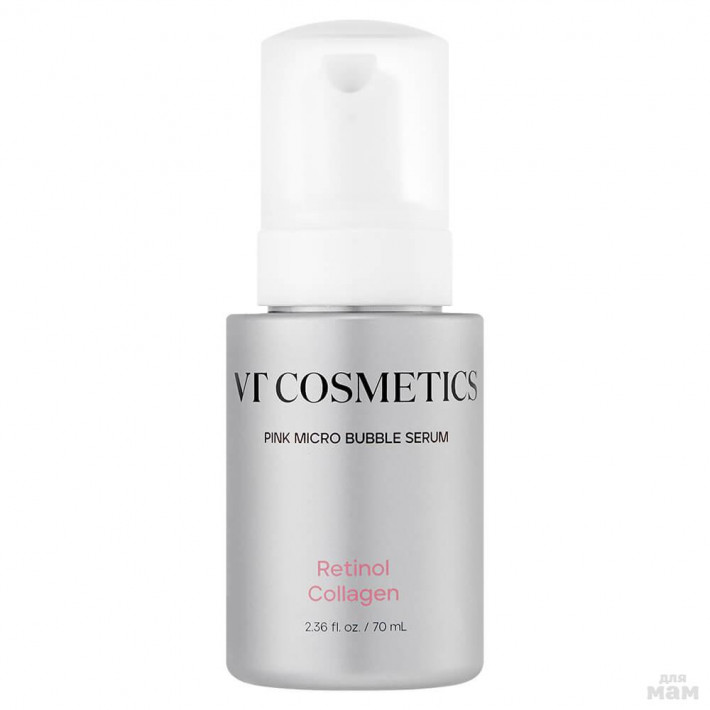 Пузырьковая сыворотка VT Cosmetics Retinol Collagen Pink Micro Bubble Serum обладает антивозрастным действием, способствует обновлению клеток и поддерживает эластичность кожи. Восполняет дефицит влаги, препятствует обезвоженности, возвращает лицу здоровое сияние.