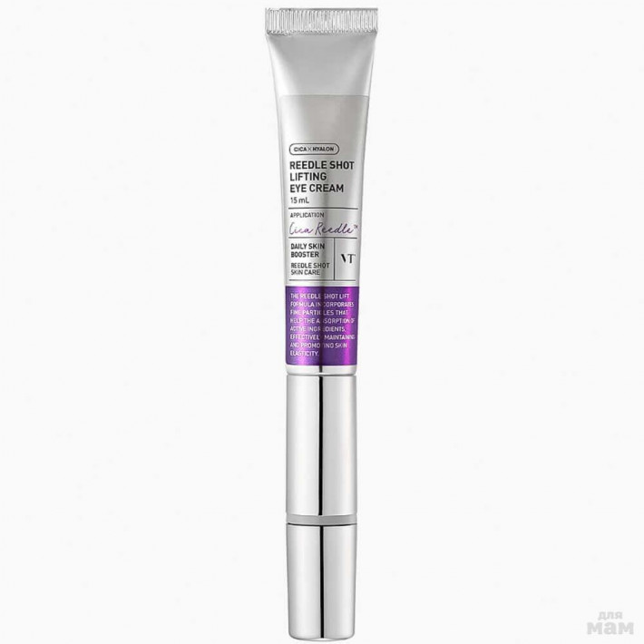 Массажный лифтинг-крем для век с микроиглами VT Cosmetics Reedle Shot Lifting Eye Cream помогает в борьбе с выраженными признаками старения, разглаживает мимические морщины и сокращает выраженность кожных заломов.