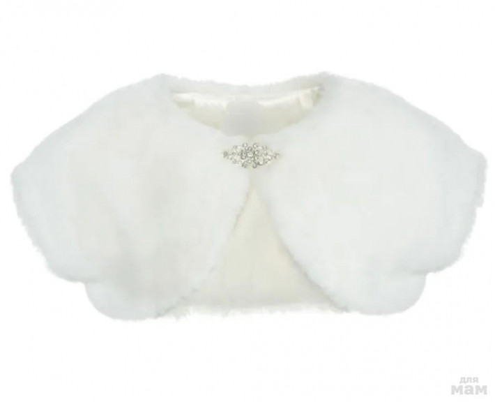 НОВЫЙ меховой жакет (болеро) LISAWETA р.140. Из мягкого экомеха под кролика рекса белоснежного цвета, на атласной подкладке, филигранная застёжка-брошь со стразами. Очень эффектно и дорого смотрится.