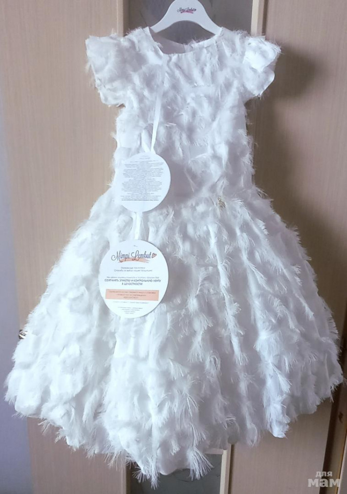 Шикарное дизайнерское платье MIMPI LEMBUT р.134-140. Классический белый цвет в сочетании с ворсистой, словно перья, текстурой, открытая спинка и рукава-крылышки придают платью элегантность и изысканность. Идеальное платье, которое подойдёт для любого события. Лёгкое, нежное и воздушное с летящей пышной юбкой. На хлопковой подкладке с многослойной нижней юбкой.