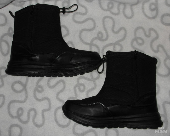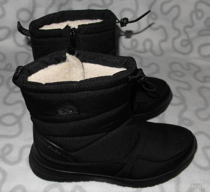 В верхней части утяжка на фиксаторах, которая позволяет регулировать посадку по ноге и предотвращает попадание снега внутрь.
