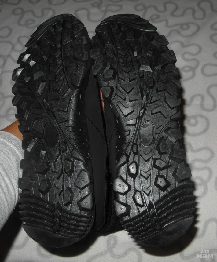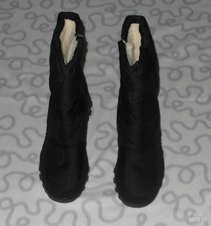 В верхней части утяжка на фиксаторах, которая позволяет регулировать посадку по ноге и предотвращает попадание снега внутрь.