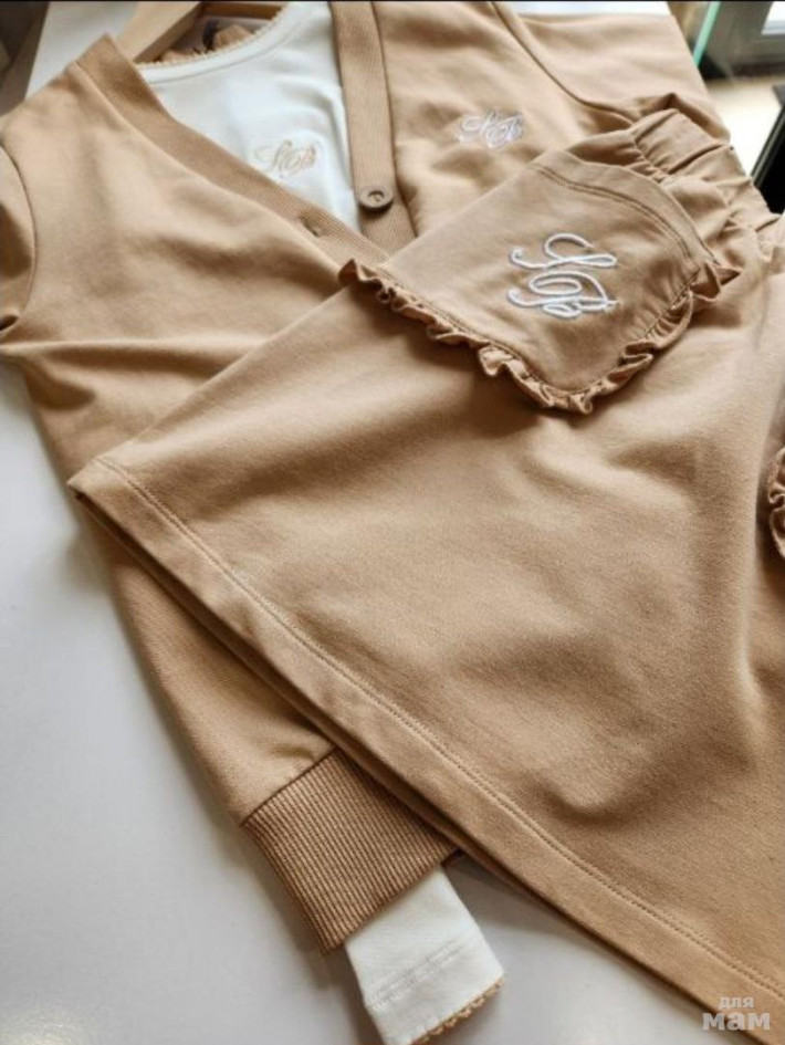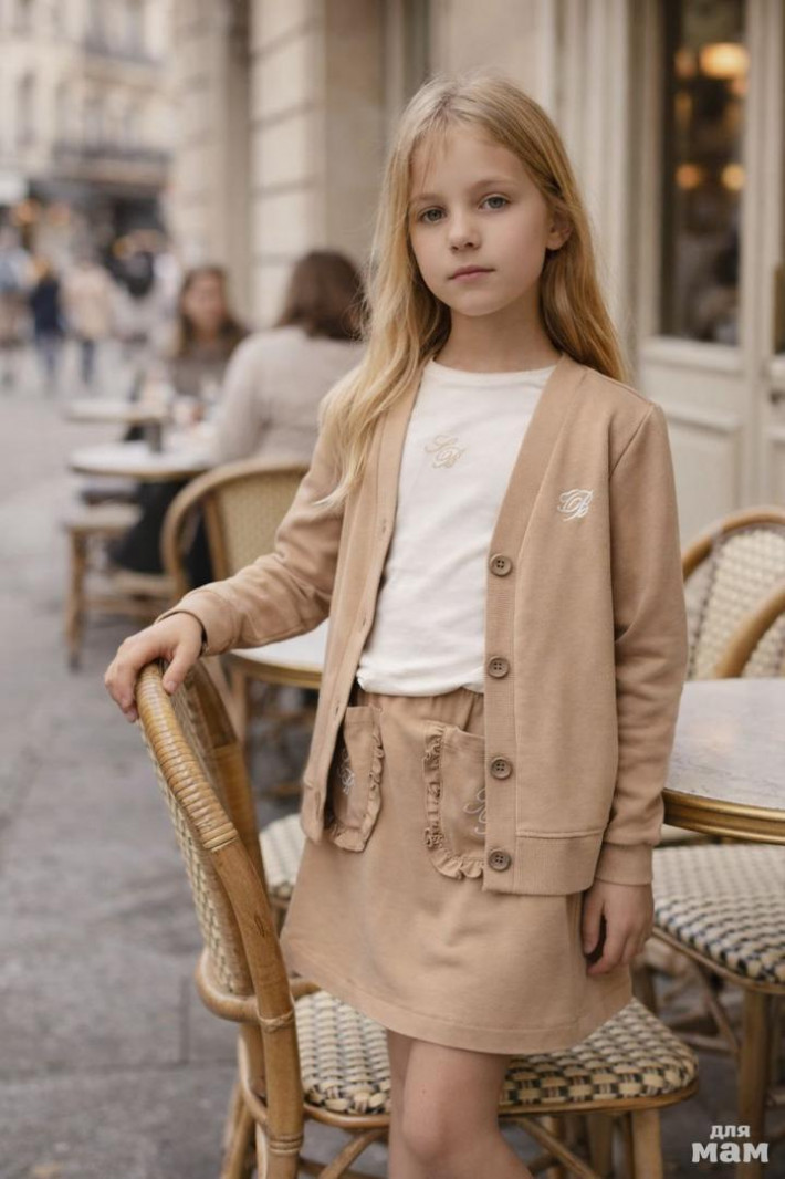 Французский бренд- SB.Жакет на пуговицах и юбка в тёплом карамельном оттенке. Мягкий, качественный трикотаж, лаконичный крой и идеальная посадка - ничего лишнего, всё про стиль и вкус. Акцентные накладные карманы добавляют образу характер. Смотрится сдержанно и дорого, подходит для школы и выходов. В комплект можно подобрать лонгслив - образ будет завершённым.