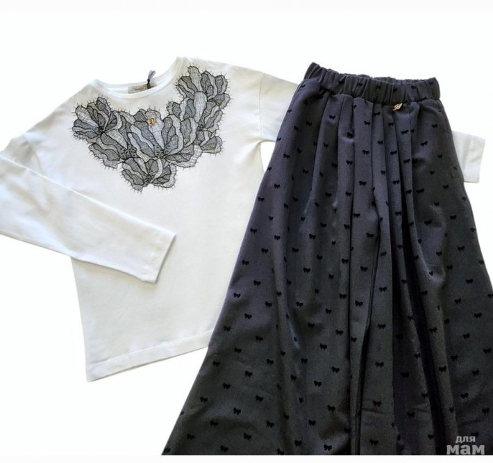 Нежный лонгслив молочного цвета с кружевной аппликацией в оттенке айвори. Спокойный, интеллигентный дизайн без перегруза. Подходит для школы и торжественных случаев. Универсальная и элегантная вещь.