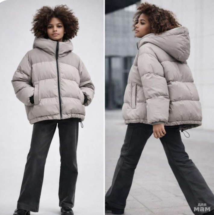 Очень стильная зимняя куртка из зимней коллекции.Унисекс,подходит и девочкам и мальчикам.Комбинировананя, серый+черный.Внутри система свободные руки+митенки.Теплая,комвортная и очень красивая!Последние размеры 134, 140
