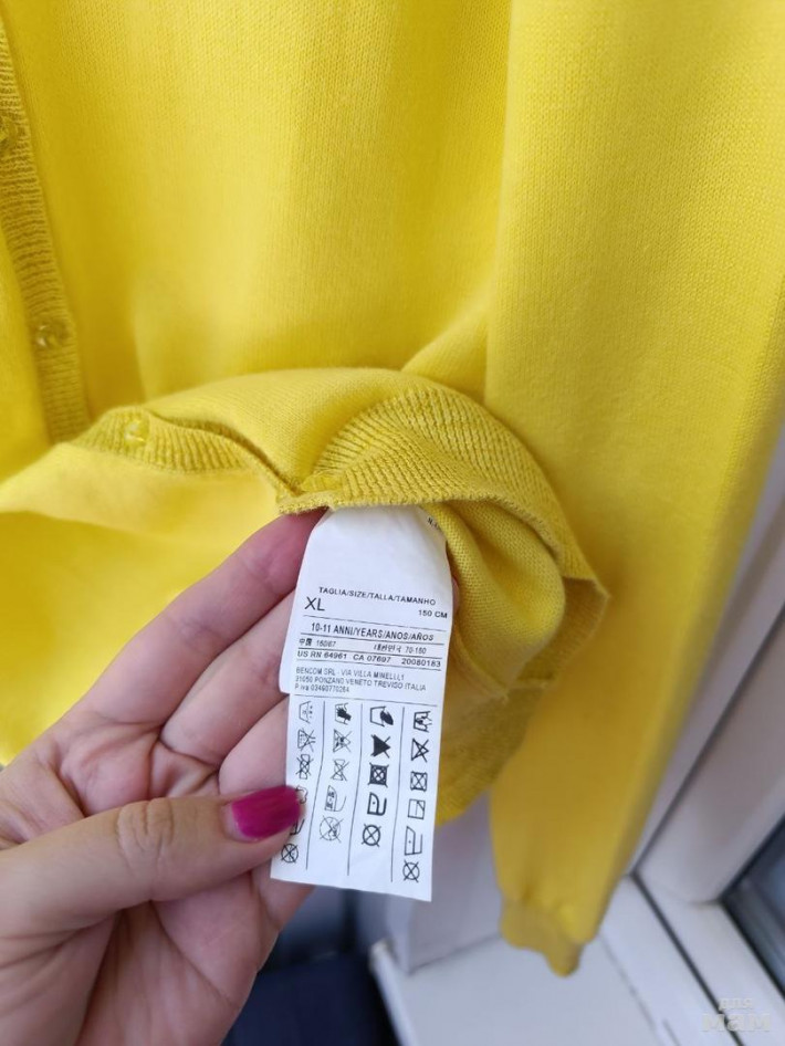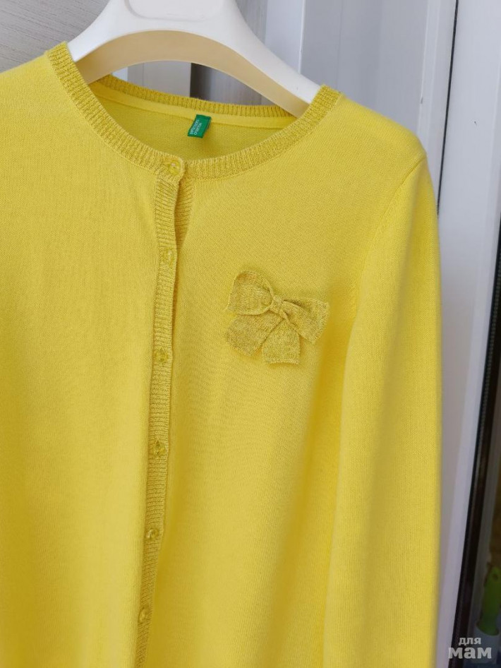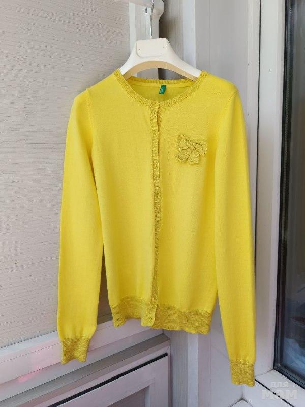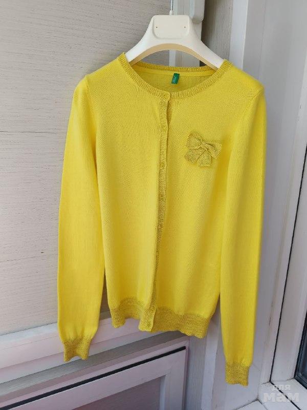 В отличном состоянии! Ярко-желтый цвет с отделкой из люрекса у манжет рукавов, горловины и банта, а также самого низа и проймы пуговок! Красота нереальная, покупала в Европе.