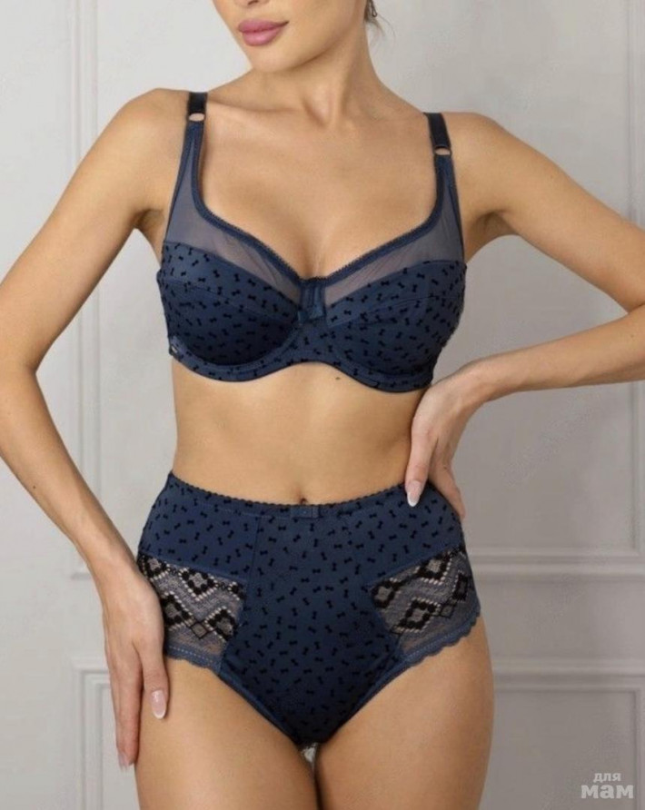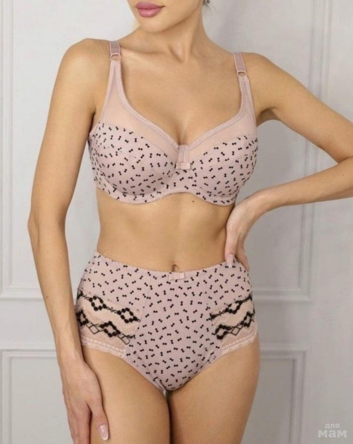 Цена 🔥750₽🔥Бюстгальтер Lanny Mode мягкая чашка с двойным членением. На каркасах. Верхняя деталь чашки из эластичного сетчатого полотна, обеспечит идеальное прилегание к телу. Нижняя деталь и стан из гладкого эластичного полотна с мелким рисунком из флока (бантики). Чашка внутри дублирована хлопком, стан внутри дублирован сеткой. Отделка - бантик. Швы ровные и аккуратно обработанные. В наличии также трусики к бюстгальтерам в качестве комплекта.
