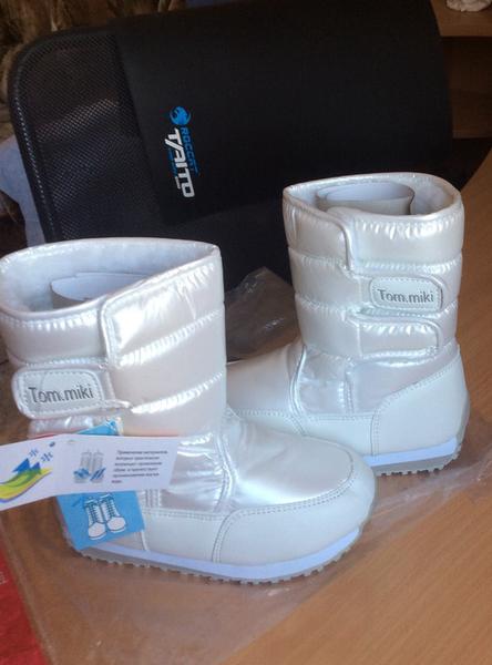 1Сапожки зимние мембрана , фирма Зебра. Внутри натуральная овечья шерсть. Средняя полнота, на высокий подъем и широкую ногу не подойдут.Одеваются очень удобно, ребенок сам может справиться. р 22(14см),