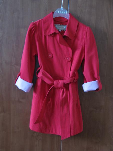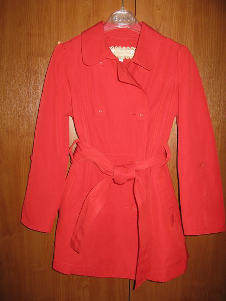 Очень симпатичный плащик, 8лет, б/у, подкладка на рукавах белая в красную полоску, состояние отличное