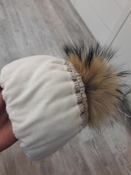 20.Шапка крупная вязка, ушки утеплены, пумпон Енот натуральный(сьемный)
