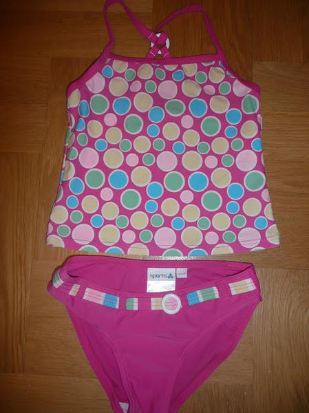 Купальник с танкини - б/у 2 недели на море (бассейн). Размер 122-128 см, но носила девочка ростом 110 см с плотным телосложением. Состояние отличное. 250 рублей.
