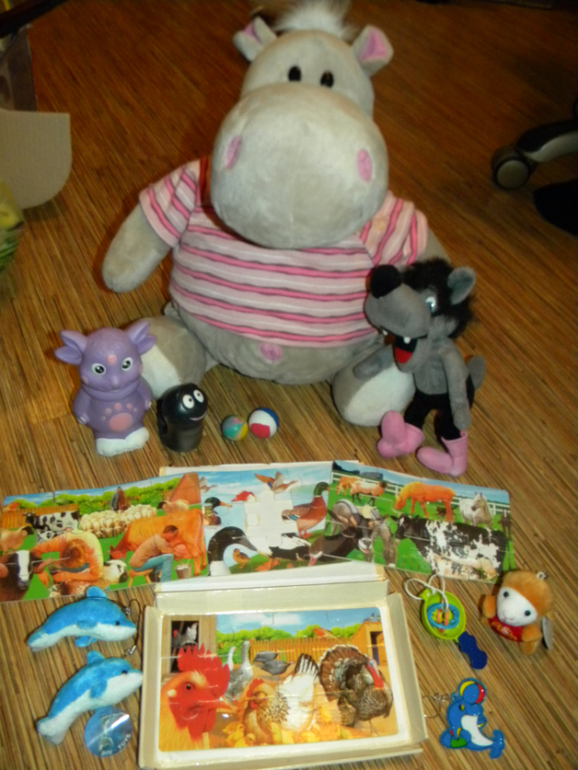 5. Набор игрушек (все,что на фото) Огромный бегемот и волчок - в идеале. Лунтик и пиявка - резиновые . Овечка и дельфинчики новые с бирками. Пазлы деревянные из шпона, коробка порвана. 4 картинки. С одной картинки потерян 1 фрагмент. В остальном отличные крупные пазлы. Цена набора 600руб.