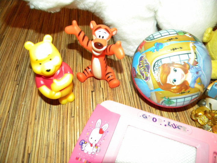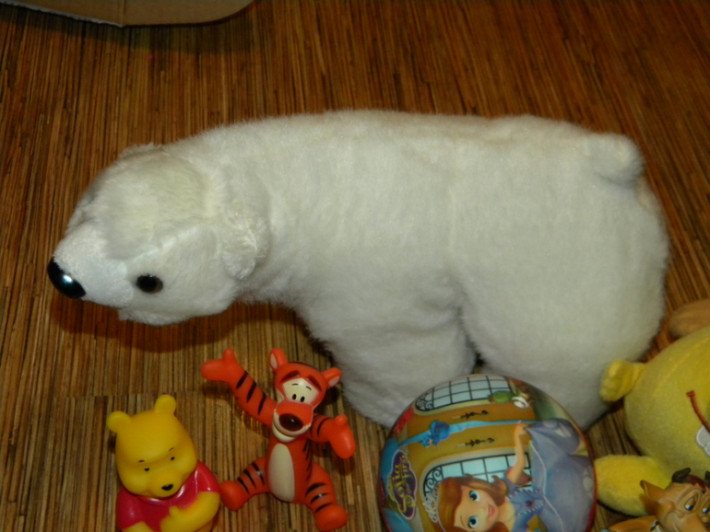 4. Набор игрушек (все,что есть на фото) Крупный белый медведь -белоснежный, в идеале, простоял, не игрались.Ослик озвученный Мульти-Пульти. Доска для рисования маленькая. Винни Пух и Тигра резиновые .Коровка фигурка керамика. Цена набора 500руб.