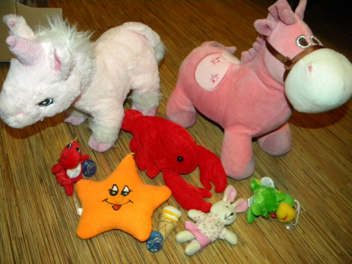 2. Набор мягких игрушек (все,что есть на фото) Все в идеале. Единорог и лошадка очень крупные. Два динозаврика и мороженое - новые с бирками. Цена 500руб.