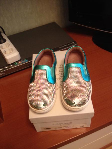 Сост на фото, носили лето и немного осень. Сост норм, стразы отпали кое-где( увы так ходим), но они продаются ведь, можно приклеить и сбоку царапины есть кое-где. Стелька вся 17,5-17,7, до загиба 17-17,2. Доп фото пришлю.цена сейчас, т.к не сезон.