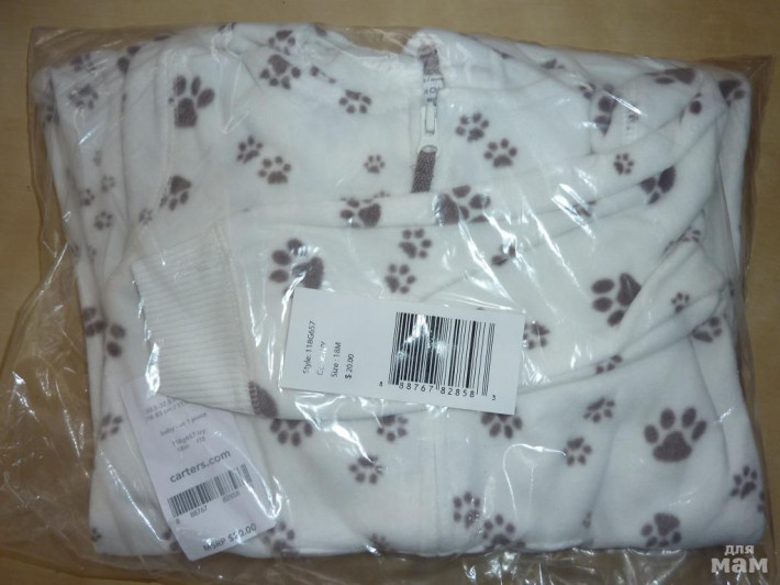 7. Флисовый слип, комбинезон Carters р.6мес. - 700р.