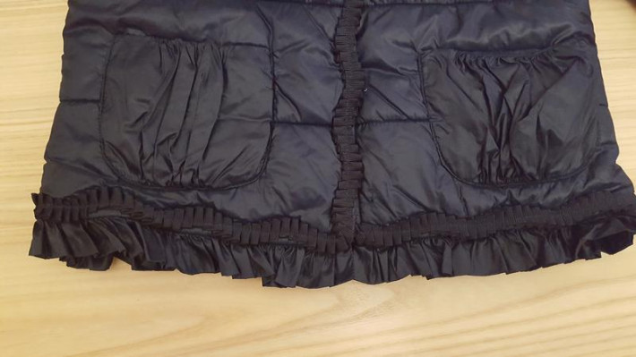 Очень красивая синяя курточка. На мой взгляд большемерит. От 125-128. На тонком синтепоне. Идеально на теплую весну-осень и прохладное лето.