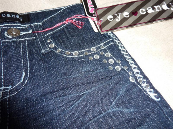 1. Новые джинсы стрейч р. 5Т. Со стразами. Ф-ма: Eye candy, США. Замеры сделаю по запросу. - 750 руб.