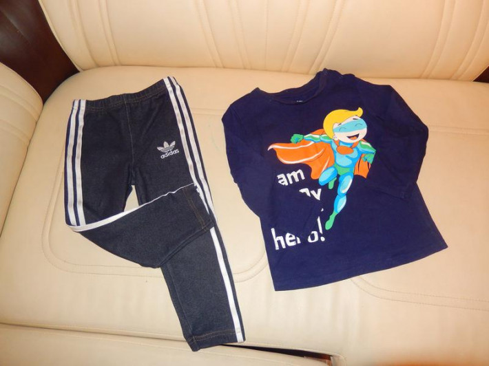 6)леггинсы под джинсу adidas оригинал (размер 92) по факту носили 92-98см цена 250 руб