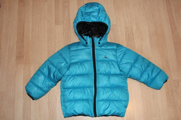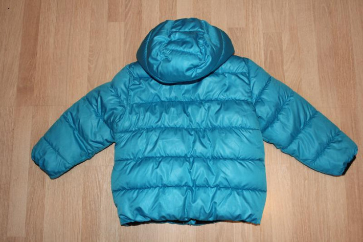 Куртка осень-весна со съемным капюшоном фирмы H&M. Утеплена средним слоем синтепона, подкладка - подкладочная ткань, 2 кармана по бокам. Узкая резинка по краю капюшона, низу рукава и низу куртки.