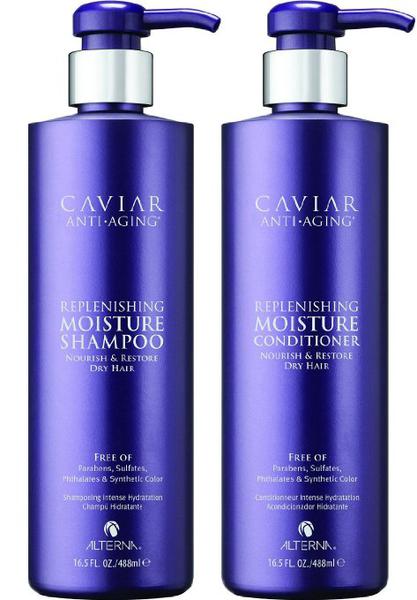 2. Набор: Увлажняющий шампунь (500мл) и кондиционер (500 мл) с морским шелком (Alterna Caviar Anti-Aging Replenishing Moisture Shampoo, Alterna Caviar Anti-Aging Replenishing Moisture Conditioner). Объем - по 500 мл.