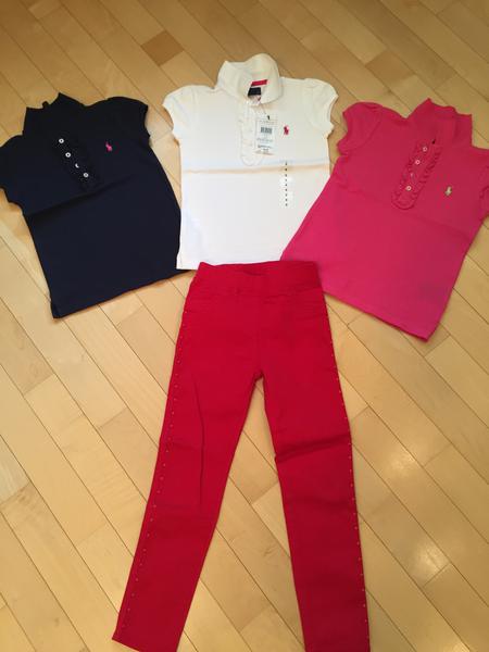 Брюки - Джегинсы 5 лет 2500 руб- продано !!! , поло белое - новое 1500 р , темно-синее и фуксия одеты по 1 разу / наверно / может и нет ... Цена 1300 руб