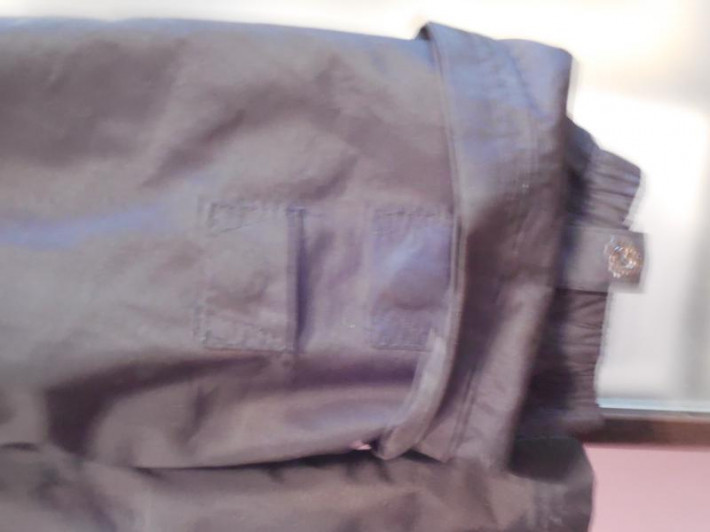 Штанишки брючками, длина брючины 40 см, внутри есть второй слой подкладочный на манжете. Брючки растут - 3 уровня - полная длина и два подворота на кнопках. Очень удобные и легкие. Грязь к ним не пристает. Есть кармашки сзади и спереди.