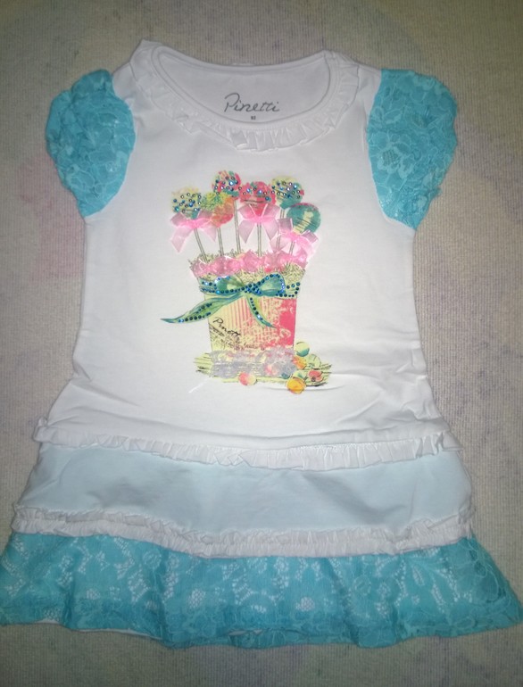 Платье Артигли 18 мес., сильно большемерит! Нам и сейчас при росте 100 отлично! Шикарное с воланами, одето 1 раз, в идеале! 1000 рублей.
