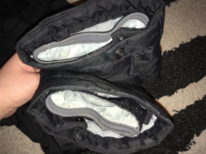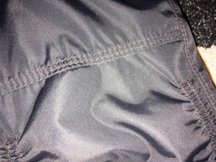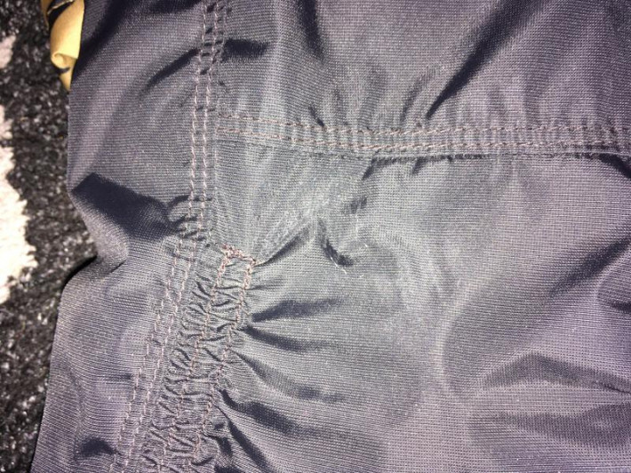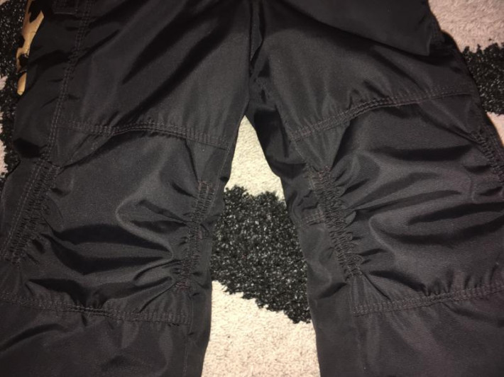 На полукомбенизоне только едва заметные цапки на коленях. Попробовала сфотографировать. Видно только если пристально рассматривать, попа и низ штанов в идеале