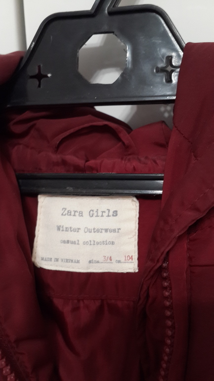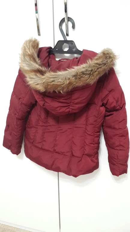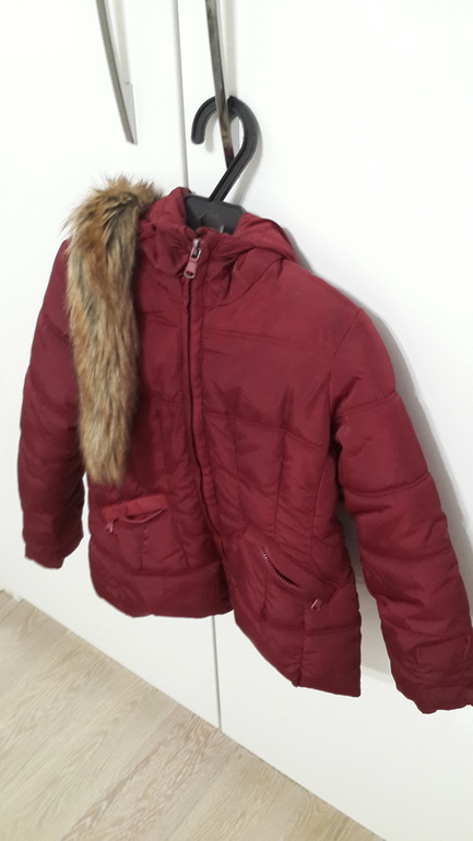 Утепленная куртка темно-вишневого цвета. С капюшоном. Мех отстегивается. Размер 3/4 (104см). Карманы застегиваюися на молнию