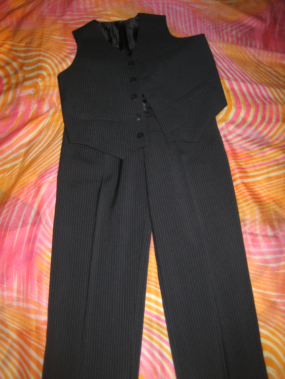 Костюм на мальчика штаны-жилетка, размер 104, но мы носили до 116. Штаны регулируются в поясе и можно подгибать, отгибать по мере роста ребенка. Состояние идеальное, одели пару раз на утренник. 1000 руб с почтой