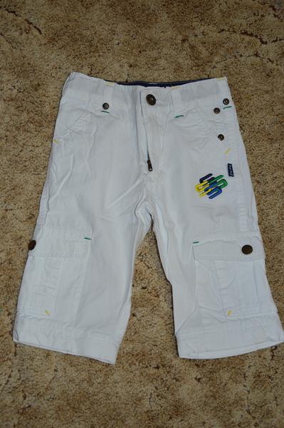 20. Тонкие брюки-трансформеры. На молнии отстегиваются холошины и получаются бриджи (на фото). Одевали 1 раз на отдыхе. Р-р 98. Стильные, необычные. Фирма Туп Туп (Польша). Цена 350 руб.