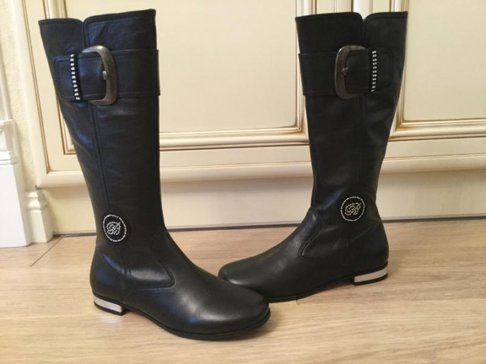 Сапоги Miss Blumarine с пряжкой , с серебристым каблучком / кожа .Размер 36.38
