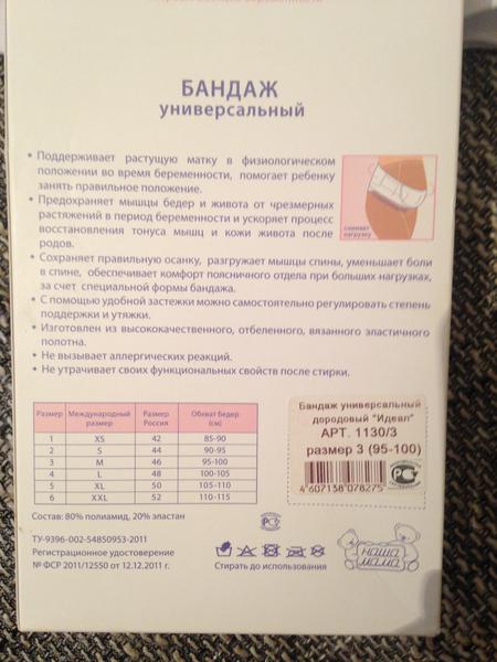 3. Бандаж "Мама комфорт", размер М (соответствует размеру 46, ОБ 95-100 см), цвет белый. Универсальный. Есть небольшие "затяжки" от липучки на резинке, но это особенность этих бандажей. Пользовалась бандажами этой фирмы две предыдущих беременности и была всем удовлетворена, пришлось поискать, чтоб купить в Москве размер М. :) Цена 300 руб.