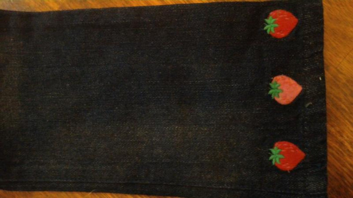 5.Джинсики с клубничкой от Крейзи 8 на 3 годика(одеты один раз)-800р