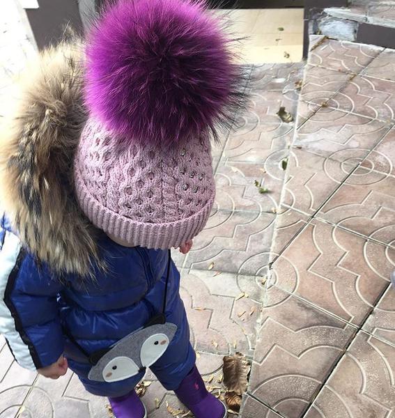 шапочка - самовяз, заказывала у мастерицы в Москве, шерсть мериноса, стразы сваровски, помпон натуральный крашеный енот -огромный диаметр 12-15 см, цвет шапки - пыльная роза. Ушки можно спрятать аккуратно в шапочке, на ог 52-54 и больше, тянется хорошо, но форму не теряет. Б/у очень мало.