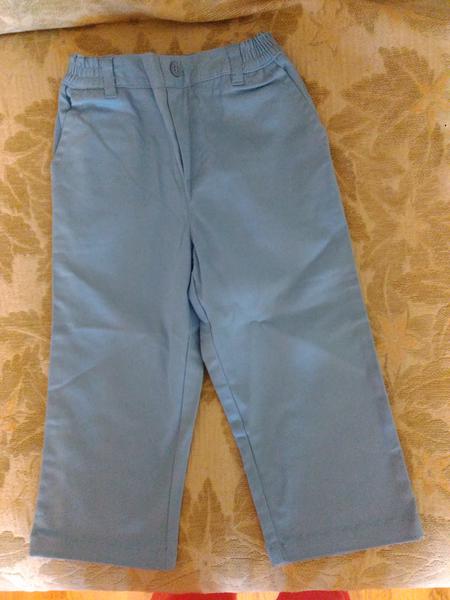 брючки на мальчика нежно-голубого цвета. Новые. Брюки без бирки, но не одеты ни разу. Сзади резиночка, удобнач посадка. Пролежали в гардеробе, мы их переросли. А бирку ребёнок сразу оторвал. Возраст 24 месяца. Извините, прямо из шкафа, поэтому слегка мятые.