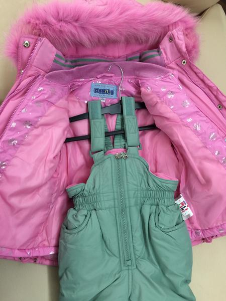 НОВЫЙ Тёплый комплект тройка для очень холодной русской зимы, состоящий из удобного полукомбинезона и куртки и жилета. Размер 92 (большимерит до 98см) . Цвет розовый очень красивый с серебрянной отделкой. Капюшон отстегивается. Меховая опушка отстегивается. Куртка на молнии, наполнитель 70% -пух, 30%-перо. Рукава куртки с отворотом для регулировки длины и с трикотажными манжетами изнутри. Брюки-полукомбинезон с эластичными регулируемыми бретелями. Спереди на полукомбинезоне молния. Грудка и спинка закрыты. Длина брюк регулируется отворотом. Изнутри брюк находится резинка, которая одевается на обувь для сохранения тепла. Верхняя ткань - 100% полиэстер. Высококачественная, водоотталкивающая, непромокаемая, дышащая, лёгкая в уходе, достаточно протереть загрязнения влажной салфеткой. Внутренняя подкладка До талии - 100% флис Ниже талии и рукава - 100% полиэстер. Утеплитель 70% пуз, 30% перо. Температура от 0 до - 25 0 С.