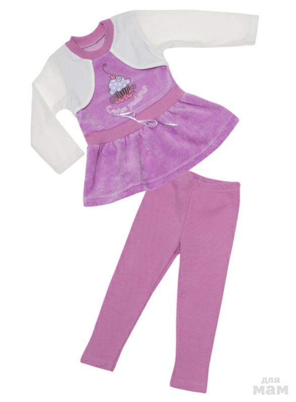 Комплекты для девочек. Велюровая туника и трикотажные лосины. Красивый качественный комплект. Два цветовых решения: сиреневый и лиловый. Размеры: 86-92 и 98-104.
