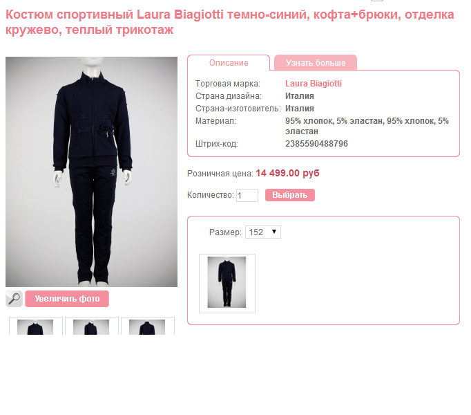 НОВЫЙ КРАСИВЫЙ СПОРТИВНЫЙ КОСТЮМ LAURA BIAGIOTTI размер 6 лет ЦЕНА . 4500 р.