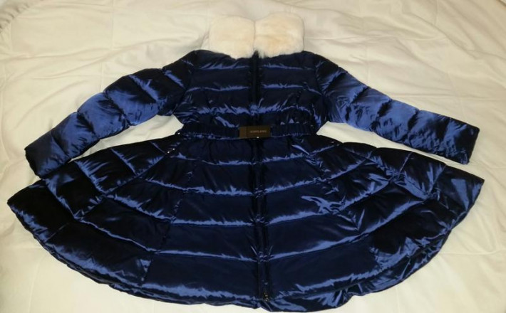 Синее пальто, наполнитель синтепух, воротник стриженный кролик молочного цв., р.128 (маломерит на 122р.)