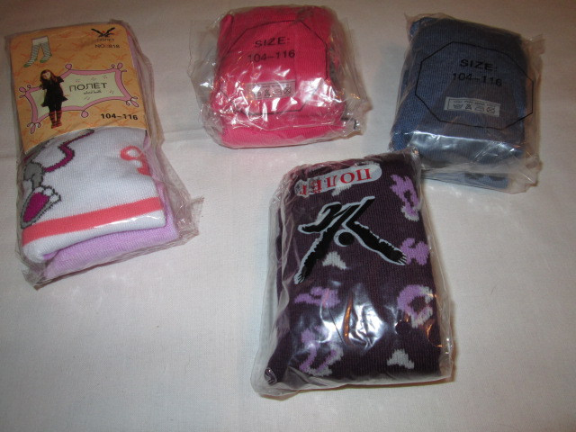 18. Колготки размер 104-116 цена 100 руб.: красные, фиолетовые и белые