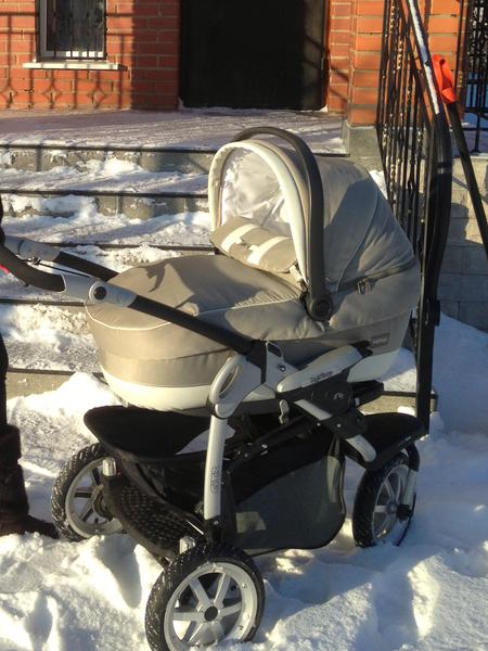 Детская Итальянская коляска Peg-Perego GT 3 2в1 модульной системы: люлька и прогулочный блок. Цвет Geo - бежевый, не маркий, подойдет девочке и мальчику.