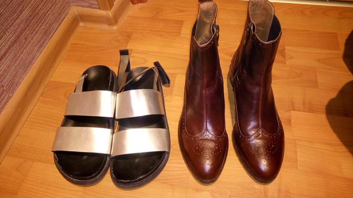 Босоножки Н&М 500руб потертости на фото видны, оч удобные, углубление для стопы