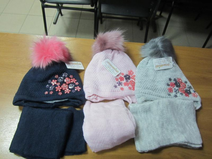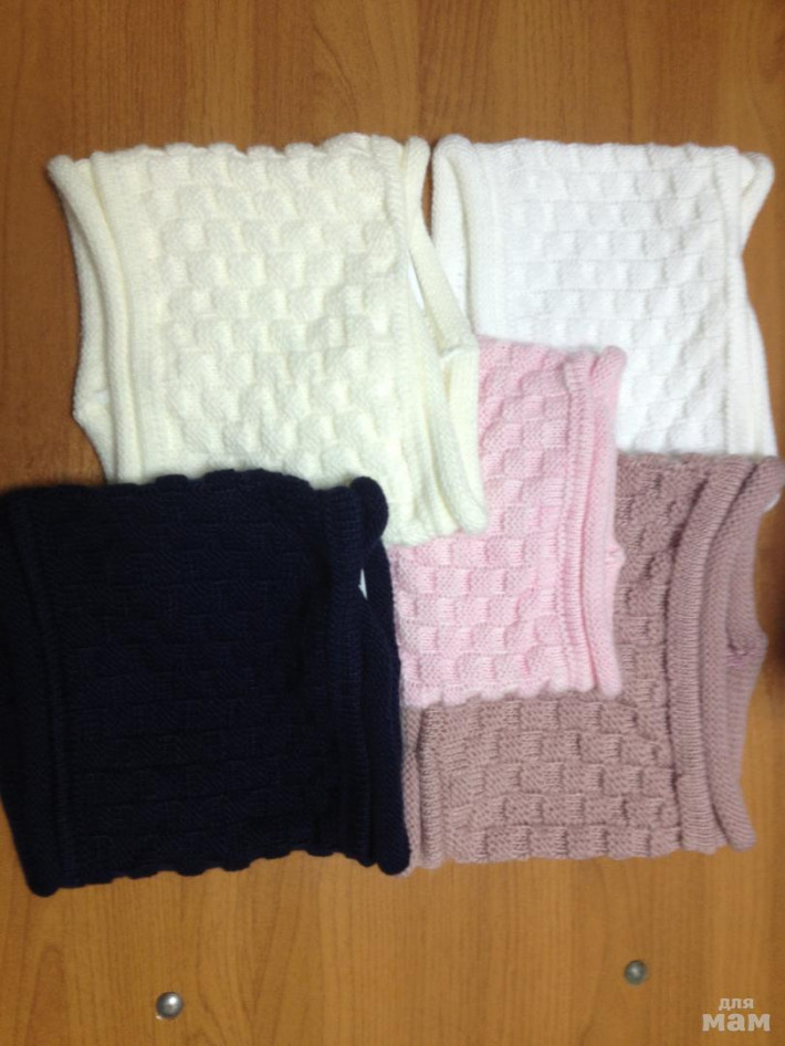 Есть шарфики -120 руб и снуды (оч. красивые, мягкие и теплые) -160 руб, можно подобрать с шапочкой.
