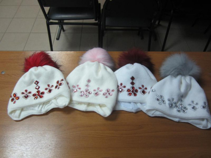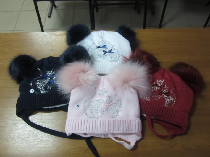Зима д/д плотная вязка+ утеплитель изософт +х/б подкладочка (пампон искусственный, но смотрится оч. красиво) -550р